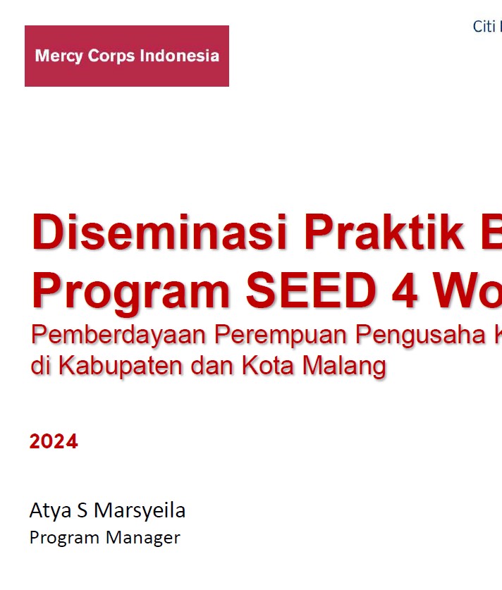 Meningkatkan Pemberdayaan Ekonomi Pencapaian Program SEED 4 Women Bahasa Dokumen : Indonesia 30 May 2024 / Comments Dikirim oleh admin pada 30 May 2024 File Download (Right click - Save link as.. for direct download) Pencapaian Program SEED 4 Women.pdf (3.26 MB)